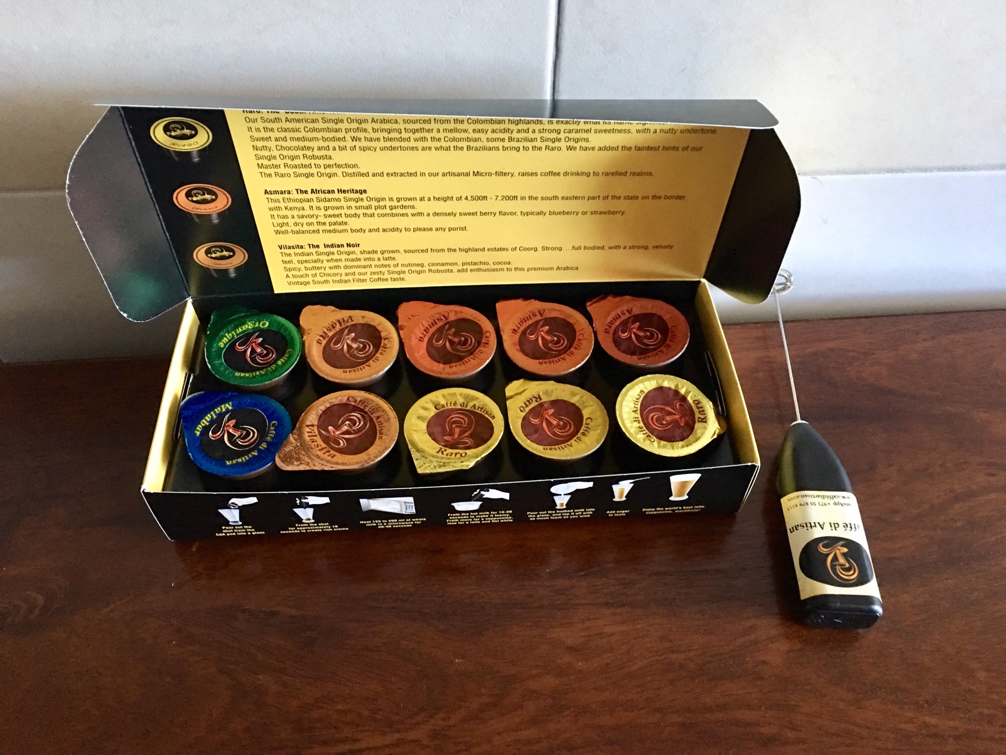 I received the box of exquisite luxury single origin coffee freshly extracted, in single shot pods at my doorstep. It is easy peasy to make. Just open the pod, froth it and add the desired amount of hot frothy milk to it, viola! Your coffee is ready.
