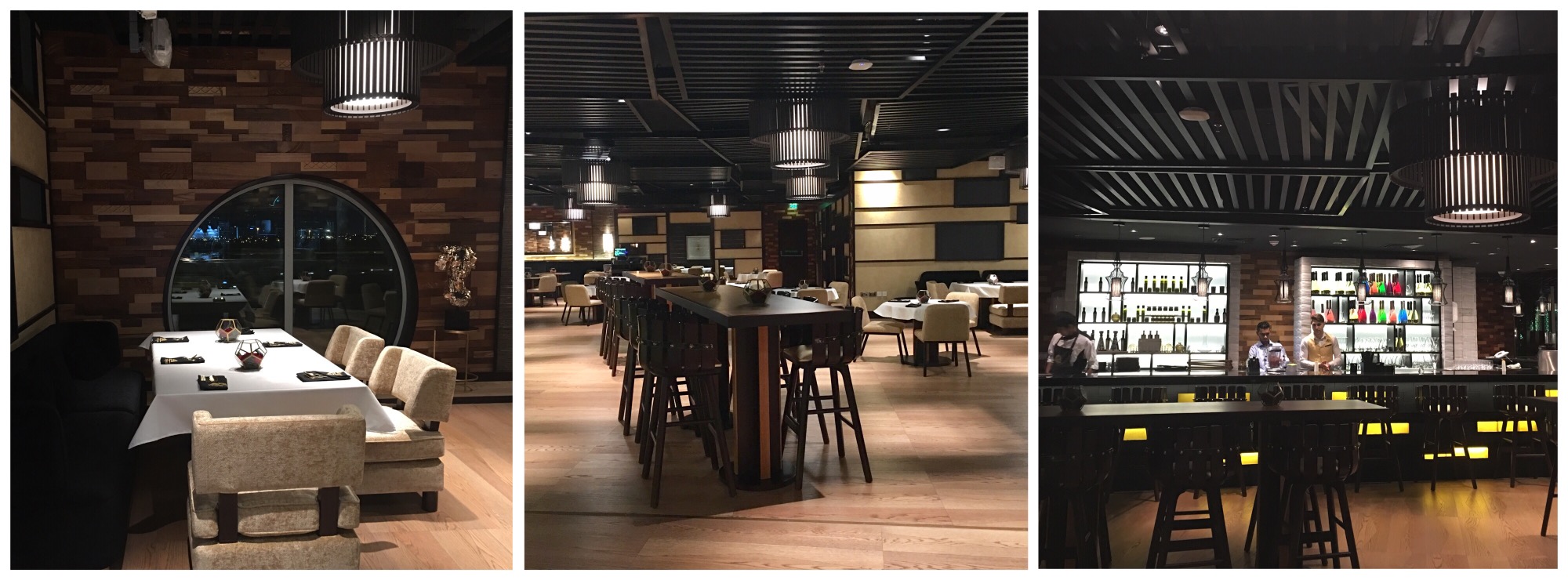 This spacious restaurant has a dining area, bar, private dining area and an Al Fresco dining terrace with views of Burj Khalifa.