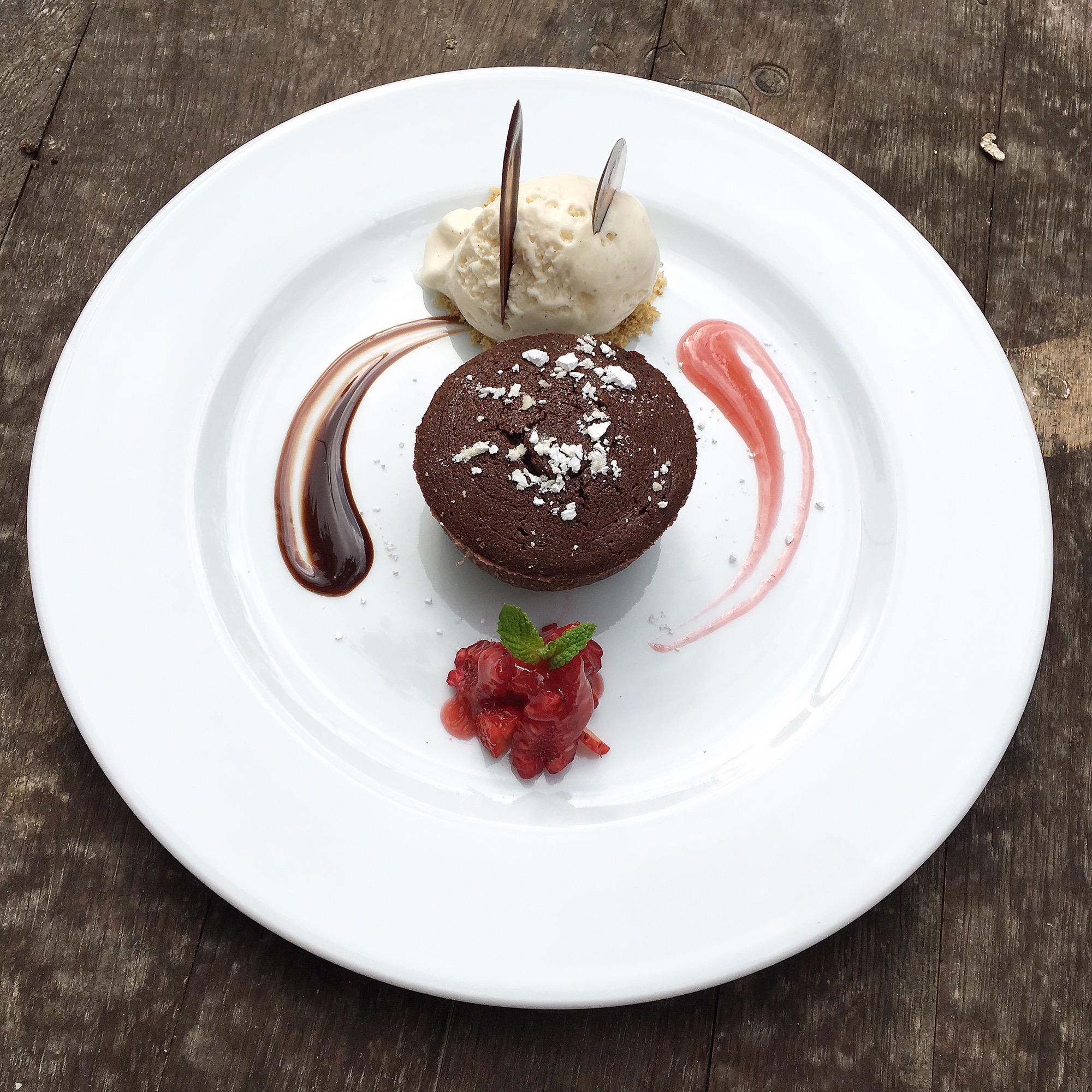 Finally for dessert we ordered their highly recommended Chocolate fondant. It was beautifully plated and served with vanilla ice cream and berry compote. The gooey centered chocolate fondant was scrumptious. Delicious way to end a great lunch.