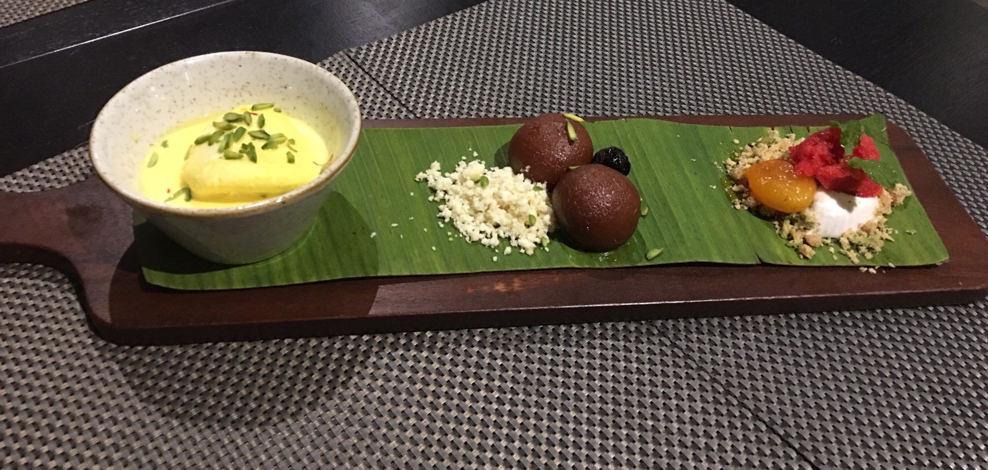 The Sweet Shop is a platter consisting of desserts like Gulab Jamun, Kesari Rasmalai with coconut cream and Peppercorn Panna Cotta. Each and every dessert was deliciously different, rich and utterly tasty. We relished it.