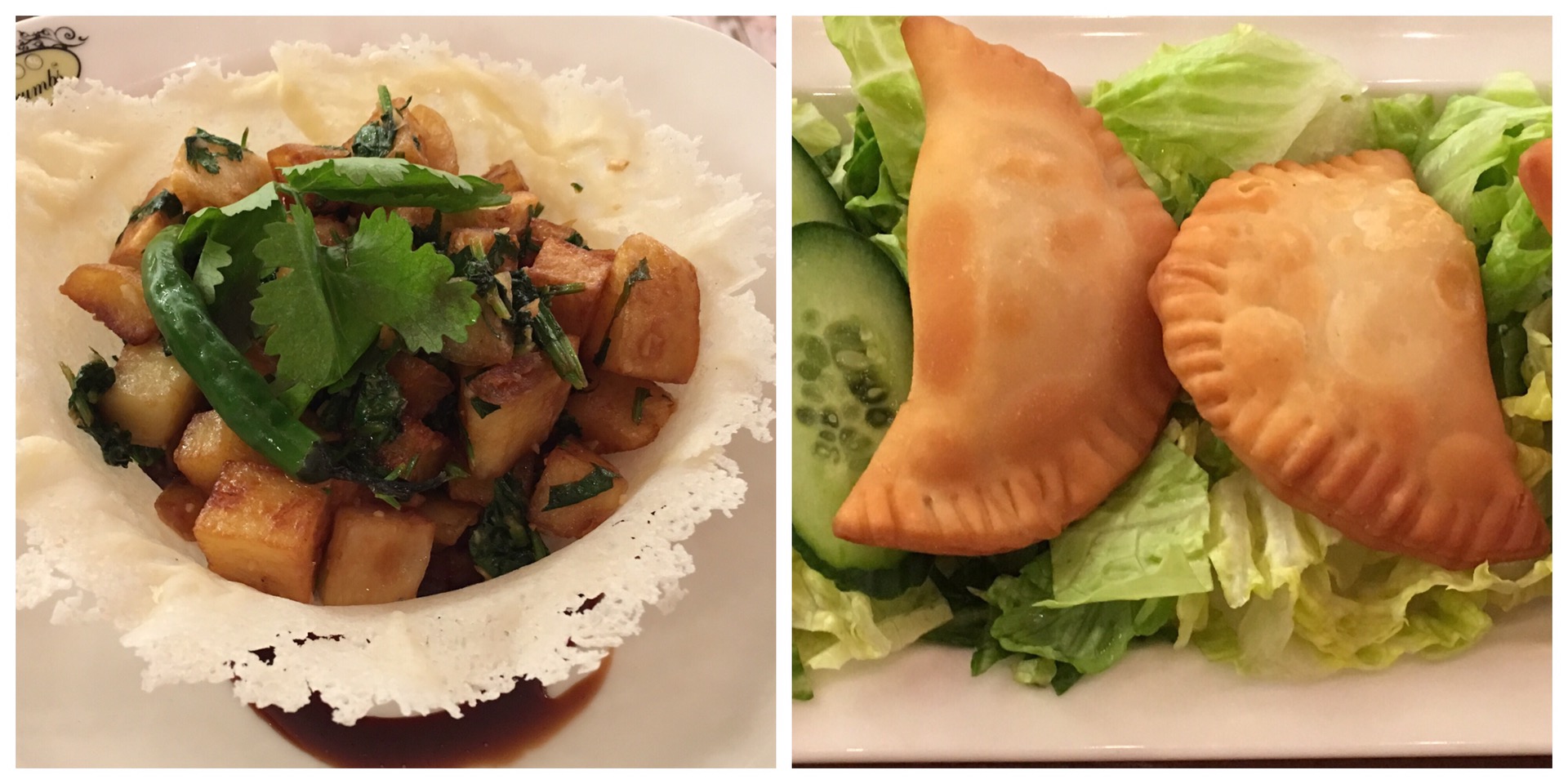 Spicy Potato cubes garnished with coriander and garlic was served on Parmesan cheese crust. It was a modern take on the traditional Lebanese potato harra, but it was lacking in flavor and taste.