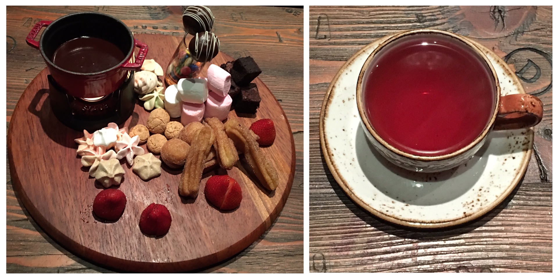 For dessert, we ordered their famous Candy Station. It was a huge platter with chocolate fondue, cake pops, meringue, churros, marshmallows and sweet crudités. It was delicious and super indulgent.