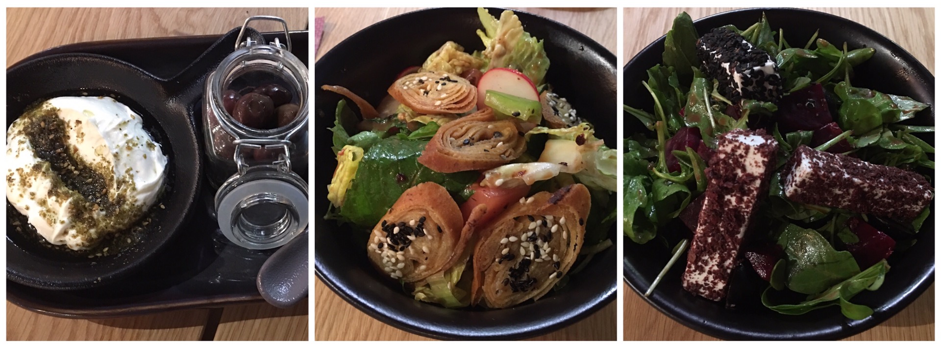 Being a vegetarian, we could try few of the dishes from their set menu. As a welcome platter we were served Labneh, Olives and Bread. It was good.