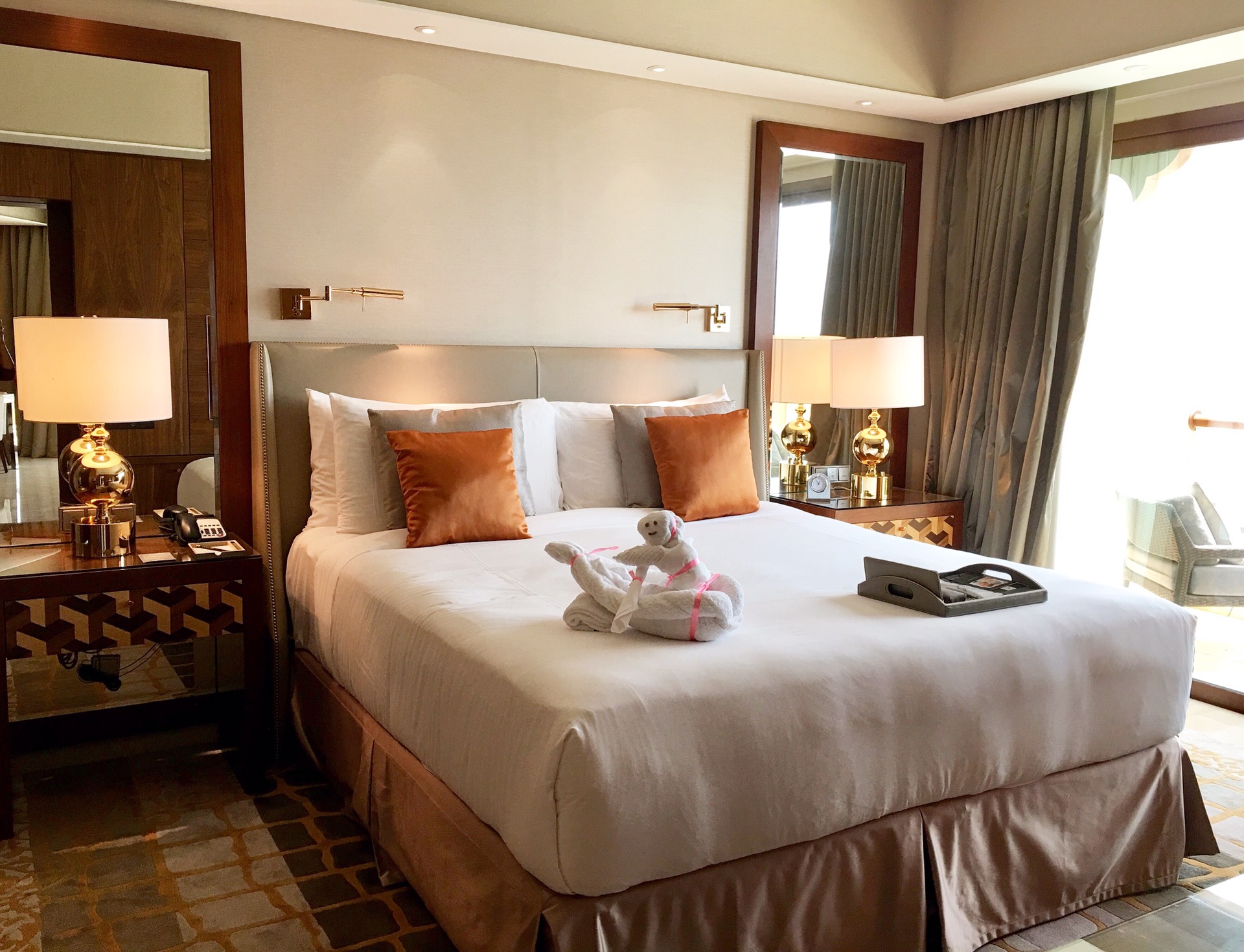 Our spacious and expansive one bedroom suite had a separate living room, bedroom and 2 balconies. The best part was the unobstructed and stunning views of the Arabian Gulf and the gigantic swimming pool.