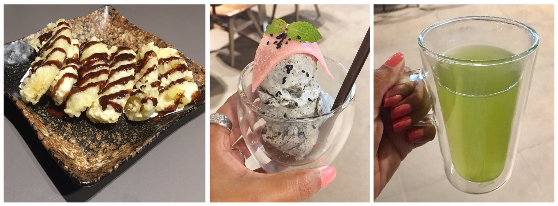 For dessert, we ordered Banana Tempura with Chocolate Sauce and Black Sesame Ice Cream topped with Mochi. The Banana Tempura was good, but the homemade Black Sesame Ice cream topped with Mochi was outstanding. Its an utterly tasty and unique dessert. Highly recommend it.