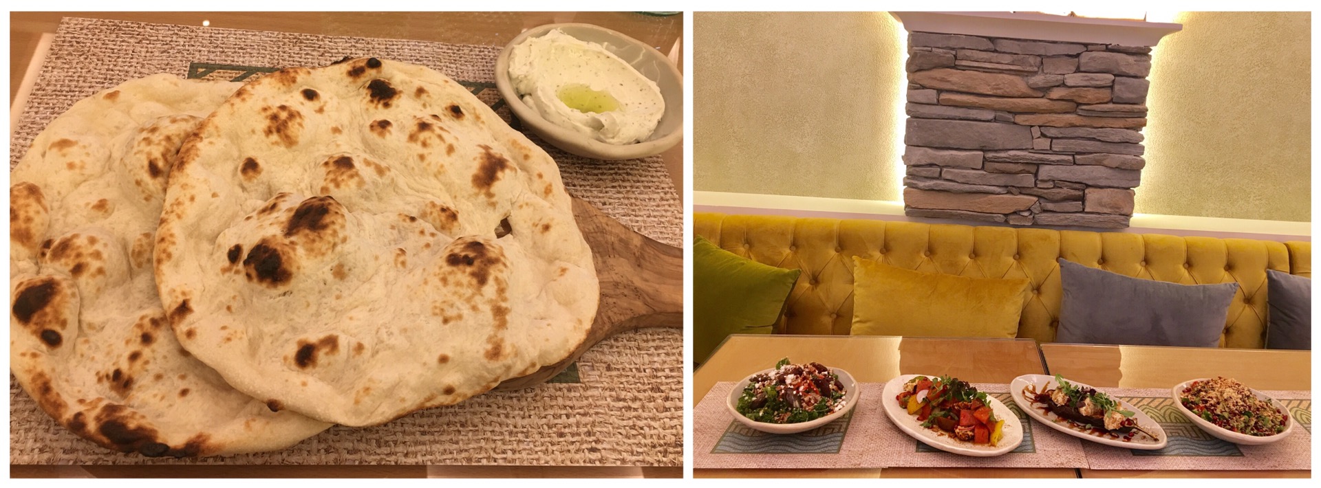 We were offered complimentary fresh Bread and Labneh in the beginning. Then our appetizers arrived one by one.