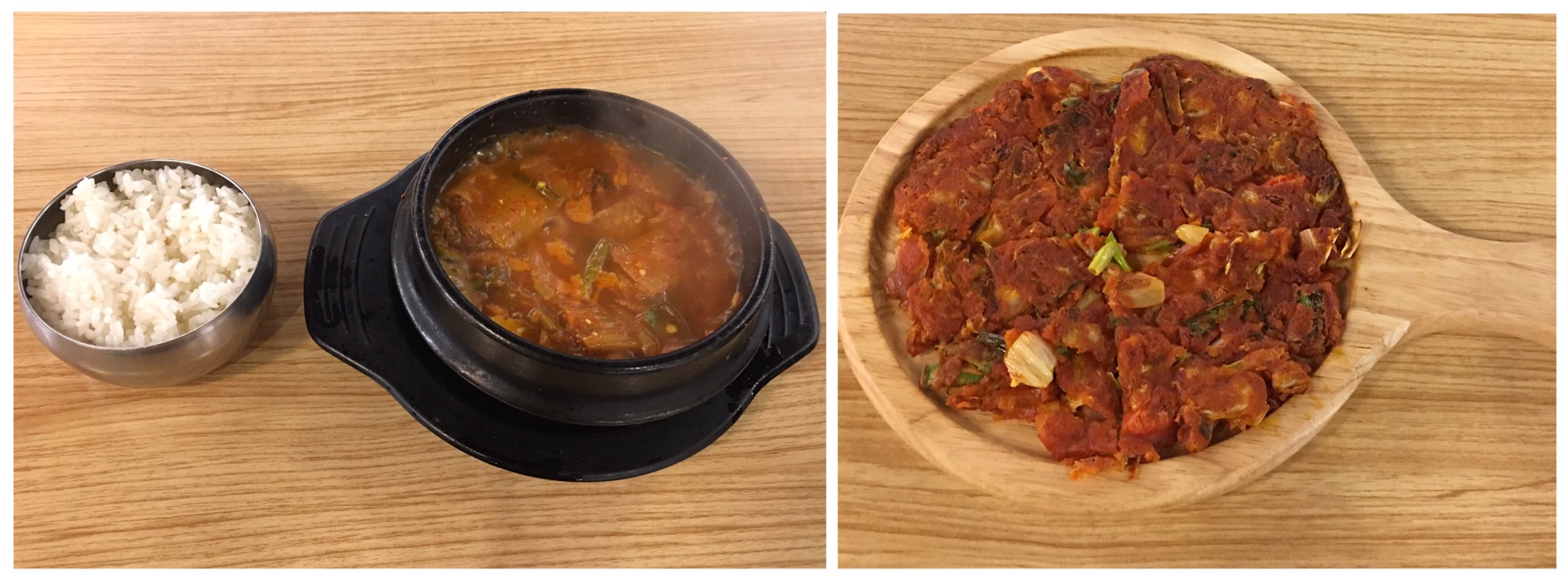 As we are vegetarians, they made us the vegetarian Kimchi with veggies and tofu. The spicy, warm, hearty and tasty Kimchi Jjigae gave us a spicy kick. It tasted good with the rice.