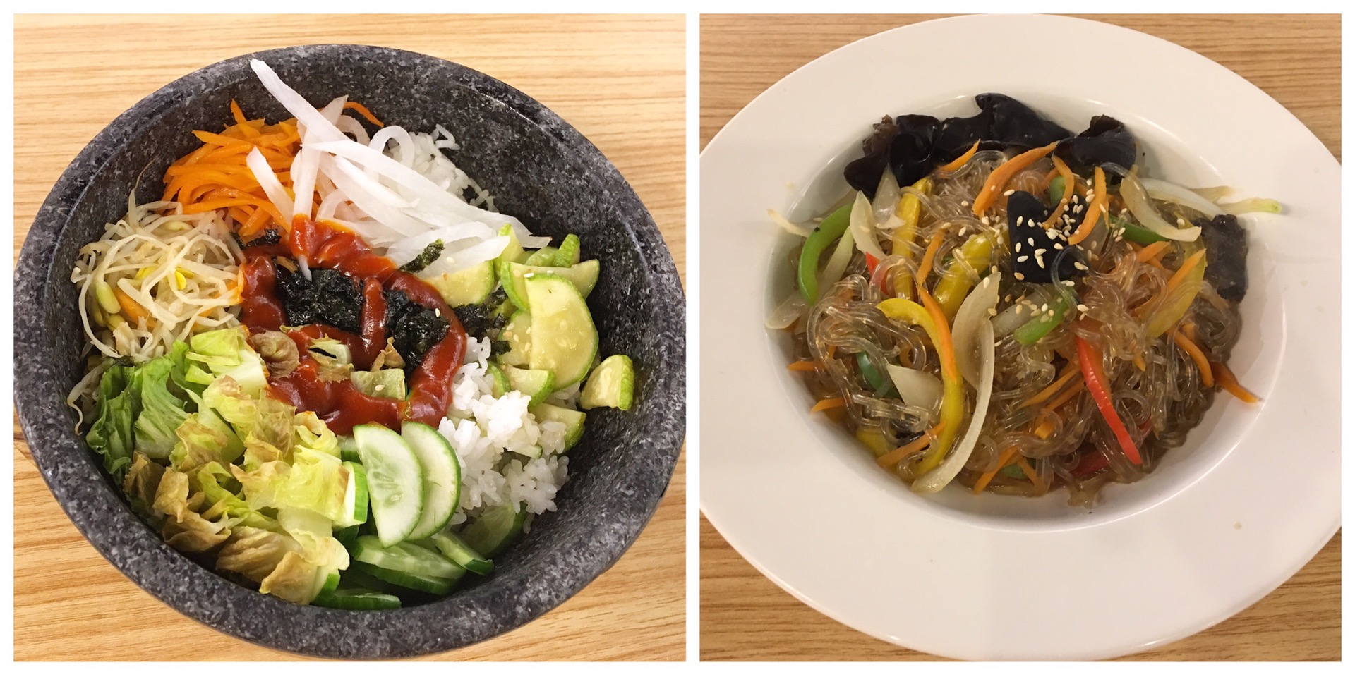 The next main course dish to arrive at our table was Japche or stir fried glass noodles. The stir fried glass noodles had carrot, paprika, onion and mushroom. This noodle had a savory, sweet and nutty taste.