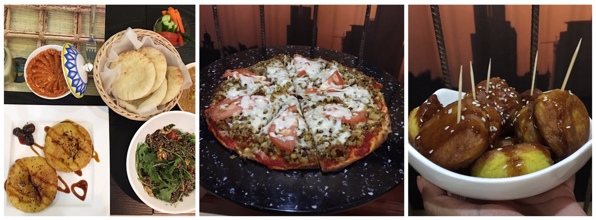 For dessert, we ordered Lugaimat, a simple Arabic dessert that was crunchy from the outside and soft inside, it was coated with date syrup and garnished with sesame seeds. It was a very moreish dessert and we loved it.