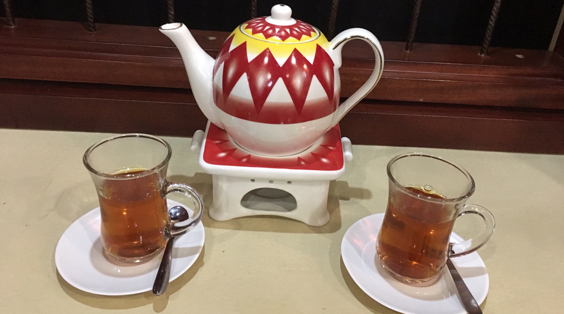 We ended our dinner with a pot of Lazfan Tea. It was black tea with subtle saffron flavor. The tea was presented in a bright colored cute teapot.