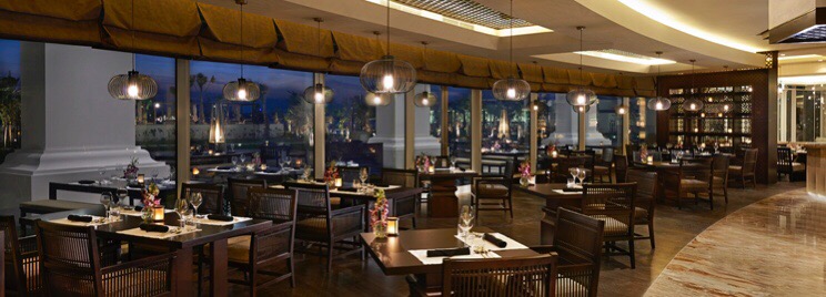 The restaurant is spacious and offers indoor and outdoor dining space. The outdoor dining area overlooks the hotel’s stunning central gardens. The interiors of the restaurant is contemporary, classy and sophisticated.