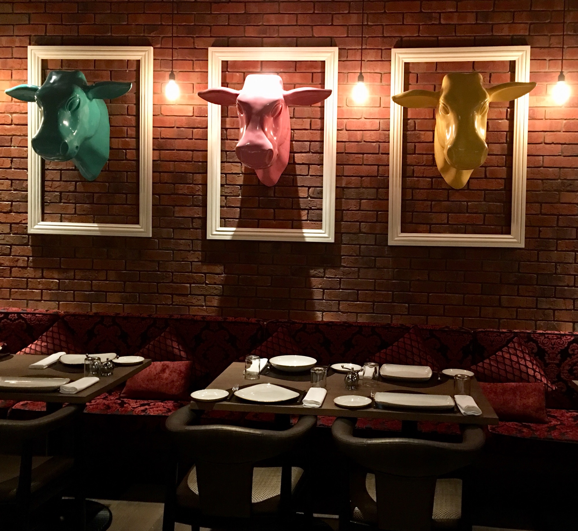 Solo has a blend of rustic and contemporary decor. We loved the terra-cotta brick walls, dim lights and wall decorations. Brightly colored buffalo heads adorning the walls of the restaurant gives it a cool and quirky look.