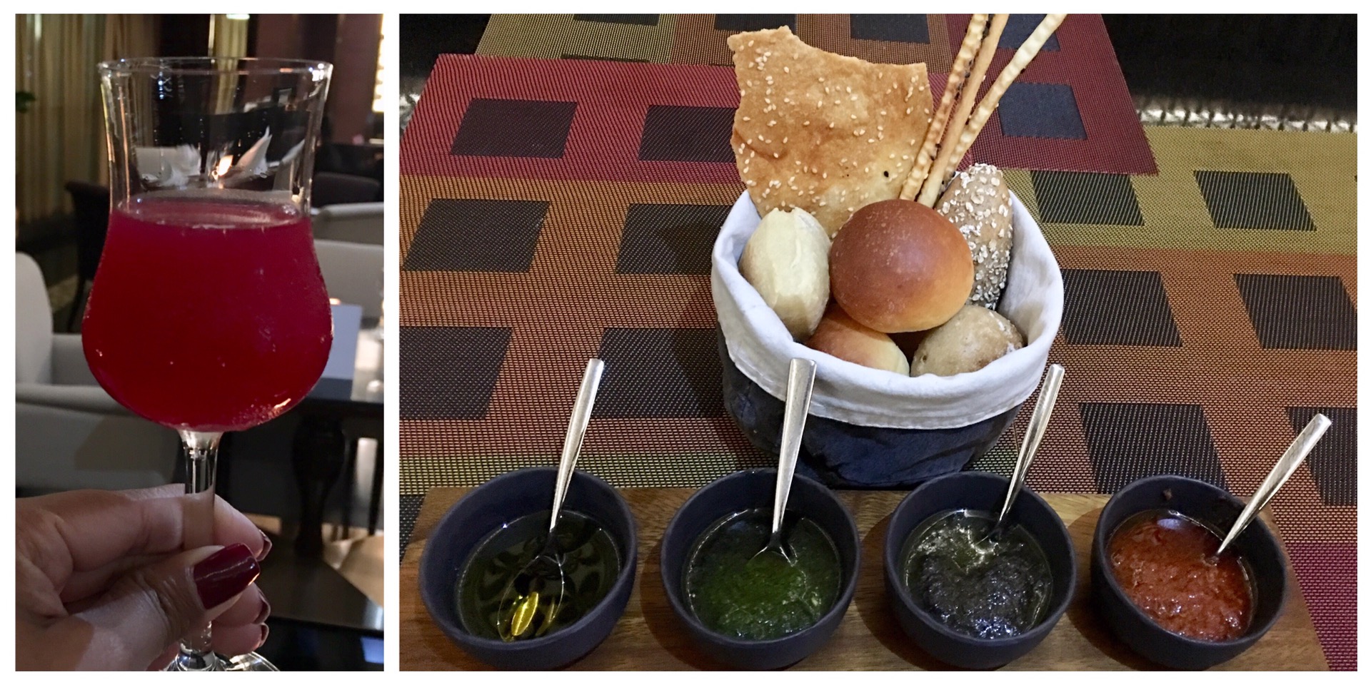 As soon as we arrived at the restaurant, we were offered a Welcome Drink. It was a raspberry and ginger based mocktail that was refreshing. We also ordered a glass of Red Wine from their extensive beverage menu.