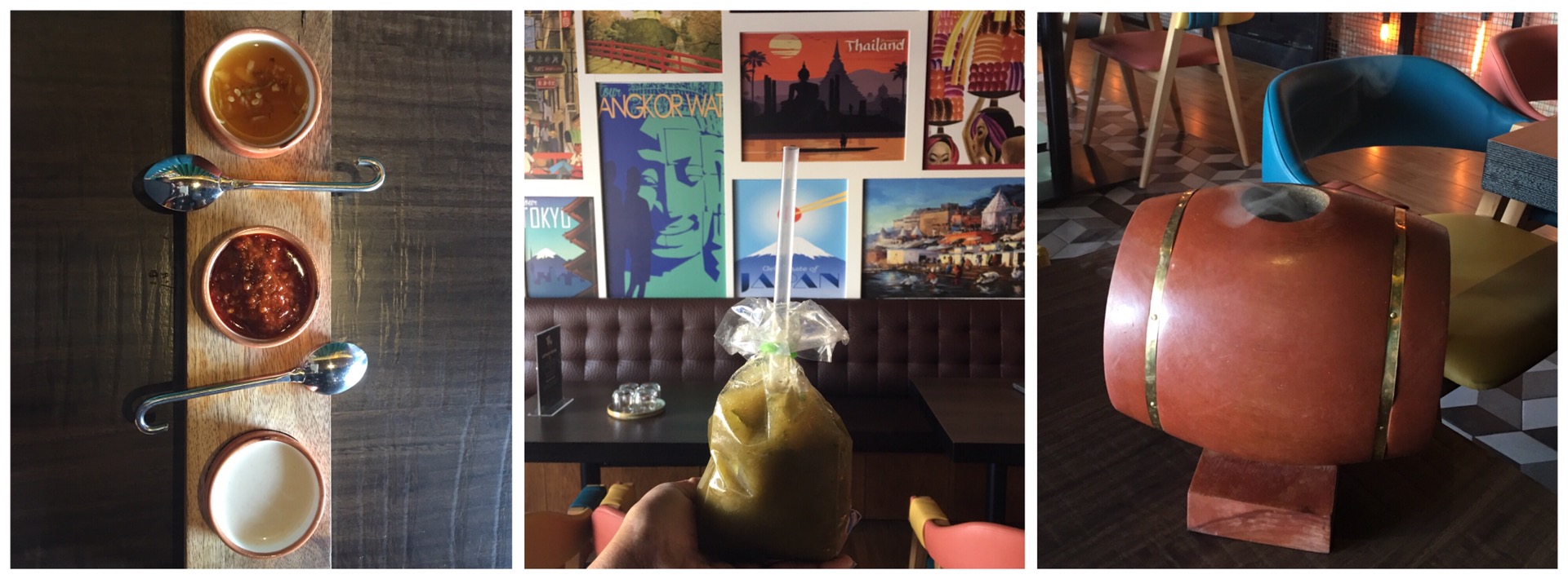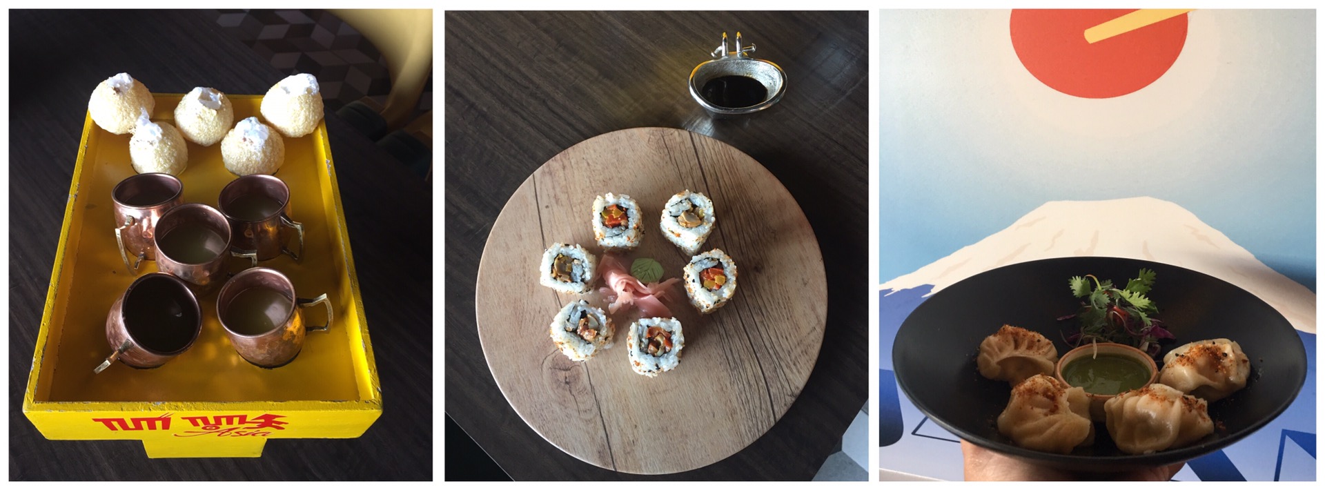 Tum Tum Asia has a vibrant and artsy interiors. We loved everything about its kitschy decor from the colorful furniture, eclectic crockery to graffiti work adorning the walls, picture frames depicting Asian countries and funky lighting.