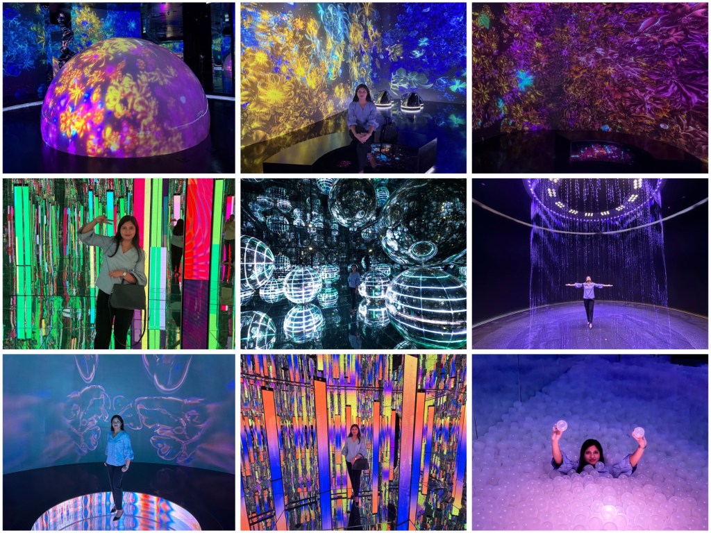 Located inside Wafi City Mall, Oud Metha-Dubai, Aya Universe is an immersive digital art experience. It is a futuristic indoor attraction where light, sound and technology create a ‘different world’ you can walk through. You can cover the whole experience within 90 minutes.